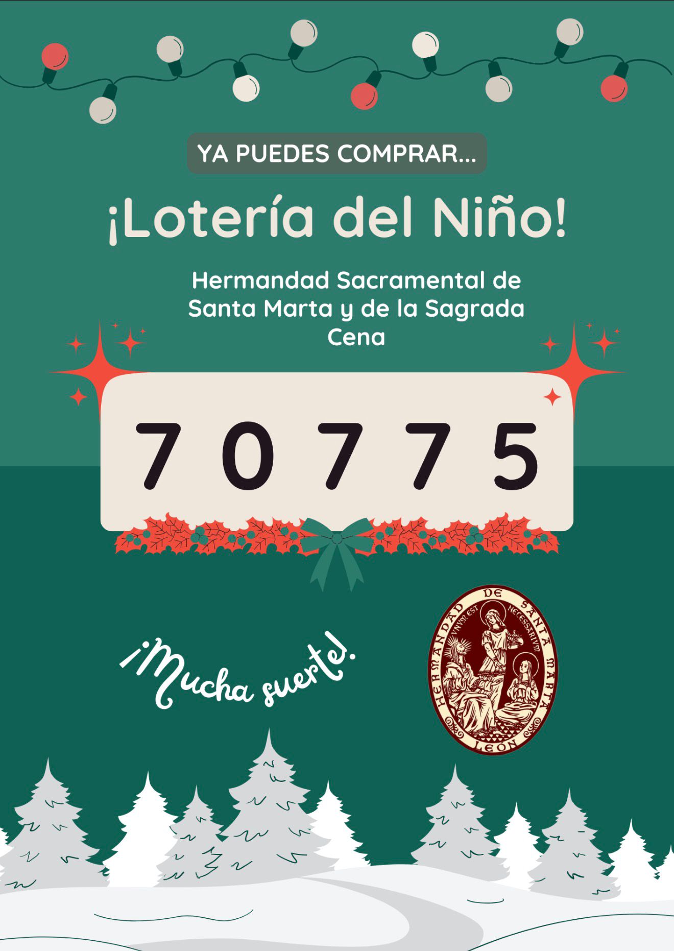 Ya se encuentra disponible la Lotería del Niño de nuestra Hermandad a 23€ en los siguientes establecimientos: